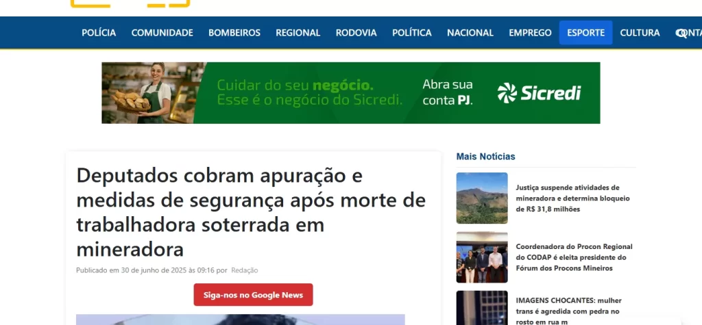 ✅ Deputados cobram apuração e segurança após morte de trabalhadora em mineradora