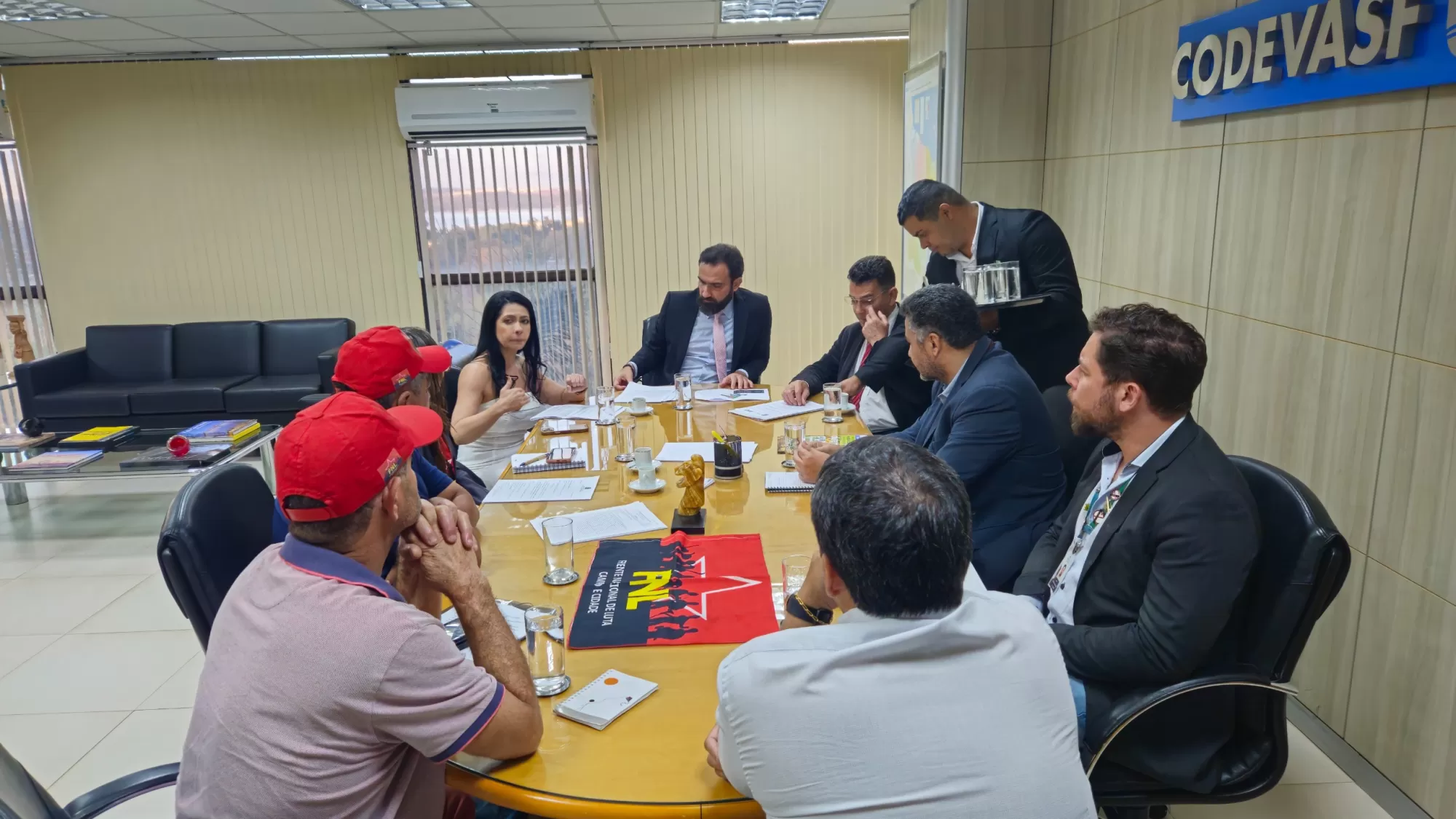 REGULARIZAÇÃO FUNDIÁRIA JÁ! Representantes do projeto Juntos para Servir participaram de uma reunião na sede da Codevasf – Companhia de Desenvolvimento dos Vales do São Francisco e do Parnaíba, em Brasília, para cobrar providências urgentes quanto à situação da Fazenda Belgominas, localizada no município de Jequitaí, norte de Minas Gerais. Do mandato esteve o deputado Padre João.